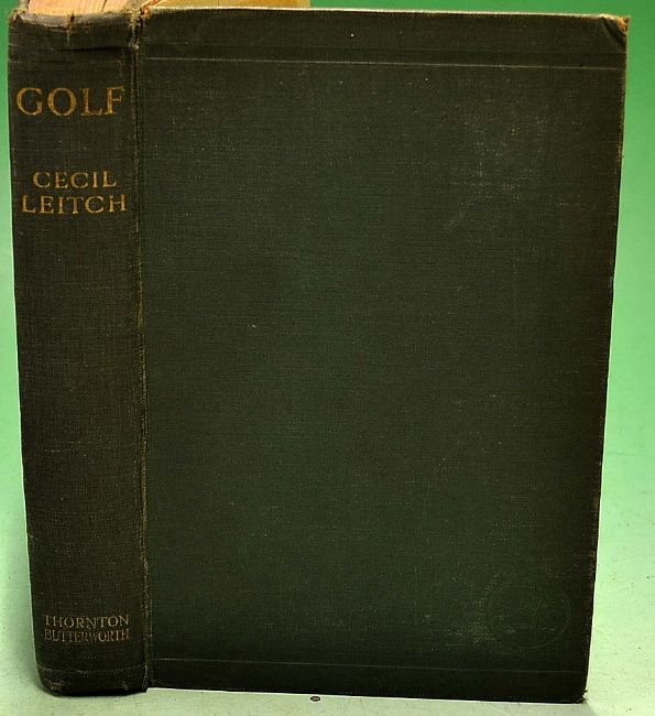 Leitch^ Cecil - "Golf" 1st ed 1922 in the original green and gilt cloth boards and spine^ containing numerous photographic illustrations^ slight bruising to corners and tears to the top of spine^ some discolouration to the inside end plates^ some pages loose (A/F)^