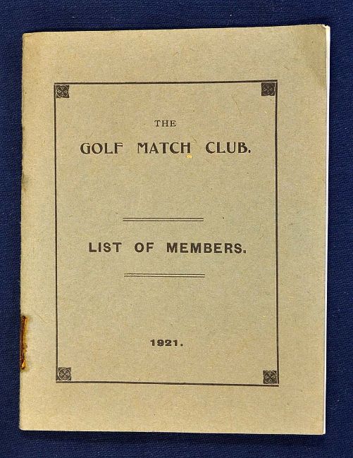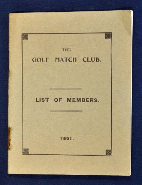 1921 The Golf Match Club. List of Members and Past captains from 1897 onwards - in the original paper wrappers^ some staple rust and bleeding otherwise internally clean - Founded in 1896 and still flourishing today^ the Club dines in London with members arranging matches amongst themselves and betting on the results)