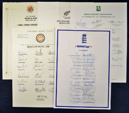 Selection of 1999 cricket World Cup signed team sheets consisting of England (Facsimile)^ Zimbabwe^ New Zealand^ Kenya and Bangledesh all sheets fully signed (5)