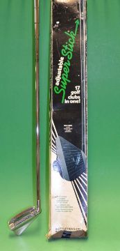 Fine Super Stick Patent adjustable golf club iron fitted with a True Temper telescopic shaft overall 38" long which closes to 24 inches for travelling purposes - in the makers original box (end flap missing and some wear to edges)