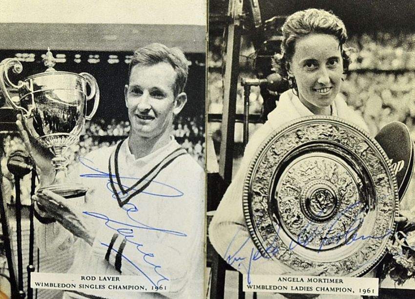 1962 Sportmans Diary signed by Wimbledon Champions R Laver and Angela Mortimer printed and published by Charles Letts a pocket sized diary in G condition