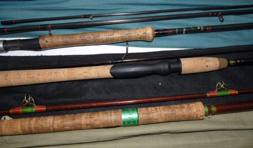 RODS: (3) Faughan Valley Black Panther 11' 3 pce carbon fly fishing rod, grey blank, lined guides whipped black tipped red, line rate 5/6/7, a Diawa Samurai 7' 2 piece spinning rod, casting weight 5-21 grams, screw cork handle with integral reel seat fine and an Arjon Sweden 9' 2 piece glass fibre spinning rod, full bridge rings, cork handle, green anodised reel rings, all with MOBs.