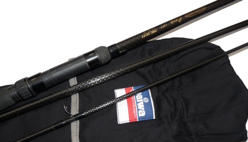 ROD: Diawa Power mesh carp rod, 12'3 pce woven carbon blank, black whipped sic guides, 2.5 lb test curve, Duplon spaced handle grips, screw reel seats fine in MOB