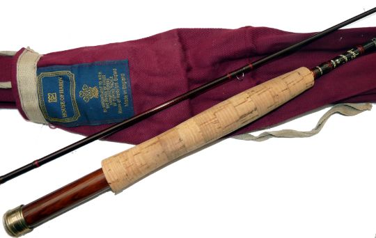 ROD: Hardy Sovereign 8'6" 2 piece graphite trout fly rod in fine condition, burgundy blank, brown whipped snake guides, keeper ring, cork handle with wood reel seat and anodised reel fittings, matching ferrule stopper, in MOB.