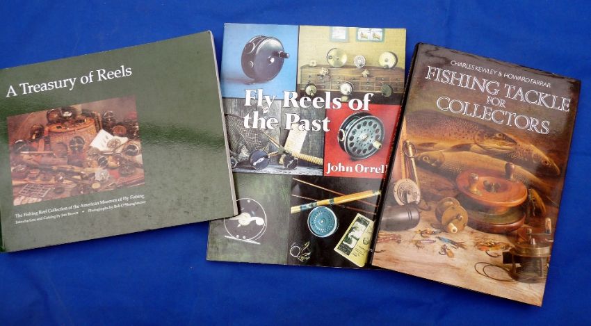 Kewley & Farrar - "Fishing Tackle For Collectors" 1st ed 1987, H/b, D/j, Orrelle, J - "Fly Reels Of The Past" 1st ed 1987, large format glossy S/b and Brown, JT - "A Treasury Of Reels, The Fishing Reel Collection Of The American Museum Of Fly Fishing" 2nd ed 2000, large format, glossy.