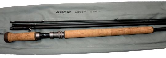 ROD: Guideline LPX 15' 4 piece high tech graphite salmon fly rod, line rate 10/11, matt black blank, large diameter snake guides, 22" shaped cork handle with anodised screw winch fitting, fine condition, in MOB.