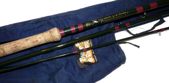 ROD: Bruce & Walker "Bruce Salmon" 14' 3 piece carbon salmon fly rod, line rate 8/10, plum whipped snake guides, 24" shaped cork handle, light alloy reel rings, generally good used condition, in MOB.