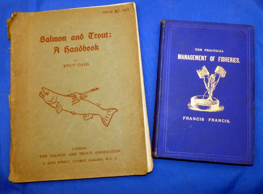Francis, F - "The Practical Management Of Fisheries" 1st ed 1883, blue cloth binding, decorative text, tight clean interior, fold out map and adverts to rear and Dahl, K - "Salmon & Trout: A Handbook" Salmon & Trout Association S/b, faded colour, 107 pages, internally good. (2)