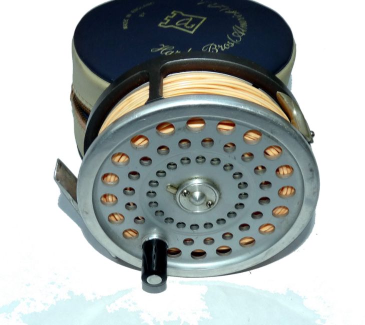 REEL: Hardy Marquis Salmon No.1 alloy fly reel, U shaped line guide, black handle, backplate tension regulator, smooth alloy foot, retaining virtually all original finish, fitted with Cortland DT9F line, in maker's padded zip case.