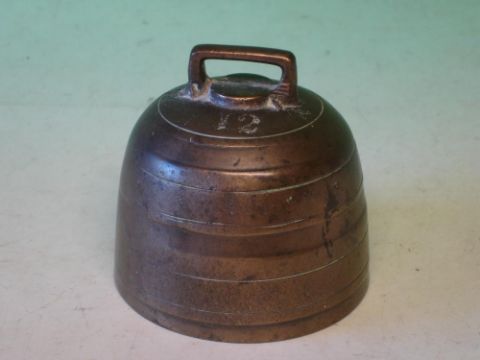A Bronze Bell With line decoration and stamped "12" 3 ½" diam