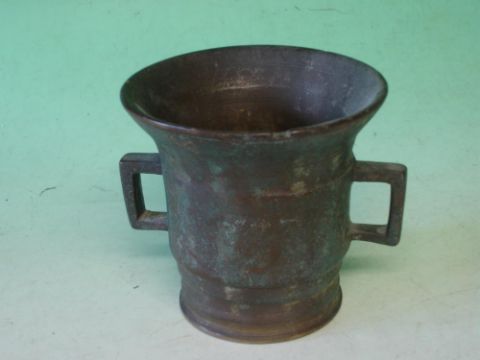 An Oriental Bronze Mortar Of archaic two handled form. 4" high