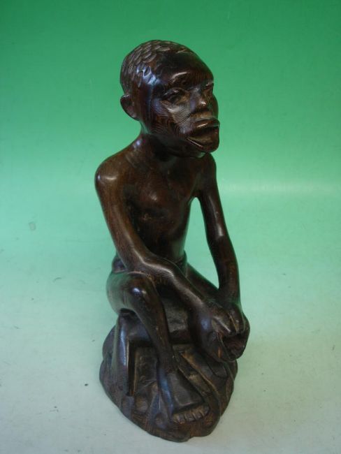 An African Carved Hardwood Figure A seated man. Inscribed on base. Congolese. 20th century. 12 ½" high