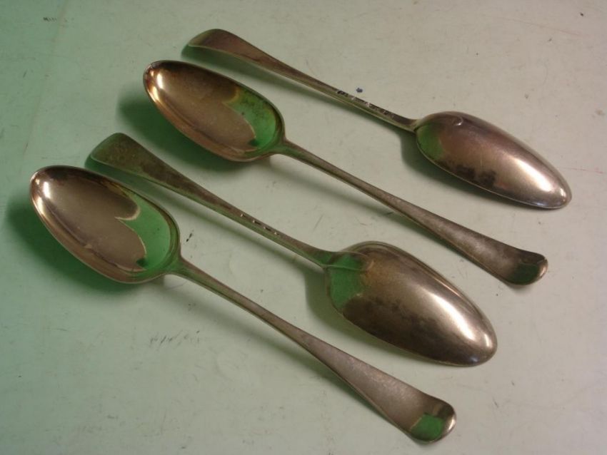 A Set of Four Silver Dessert Spoons London 1768-69. 8 ¼" long. 7ozs 12dwts.