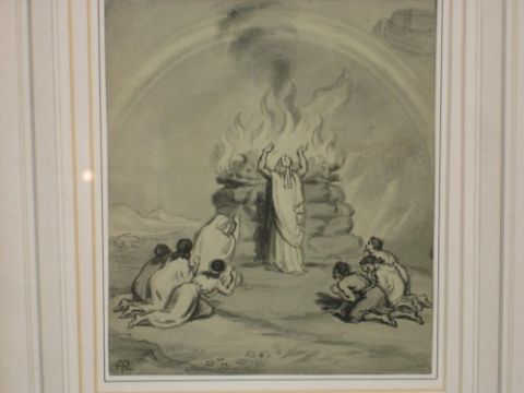 After Millais Biblical scene. Watercolour en-grisaille 6 ½"x 5 ½" Bears monogram