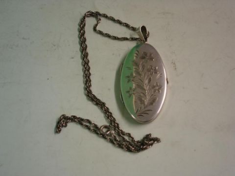 A Silver Locket Oval, engraved with foliage. 44mm high