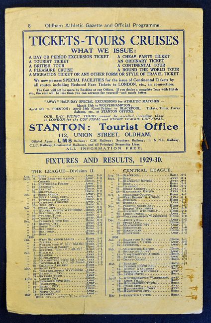 1929/30 Oldham Athletic v Stoke City match programme for the match at Boundary Park on 8 March 1930. Fair condition for this scarce item. Oldham won 5-0