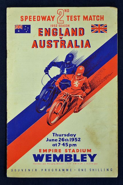 1952 England v Australia Speedway Programme – 2nd Test at Wembley Empire Stadium on Thursday 26th June – hand written results in pencil, some staple rust, slight thumb stains otherwise clean hence (F/G)