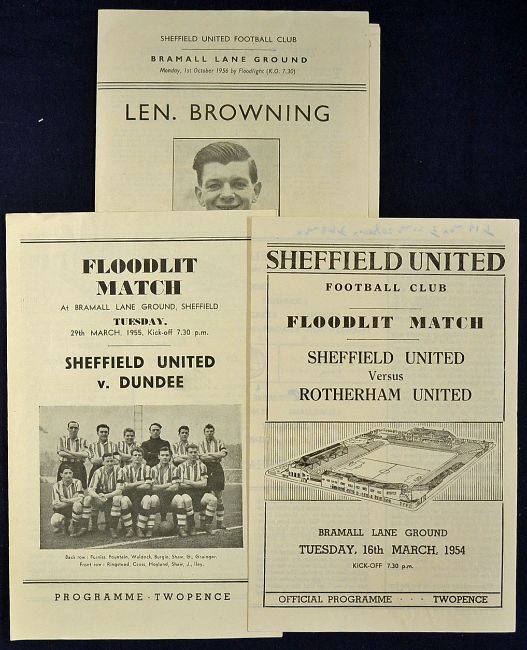 Sheffield United football programme selection 1954 v Rotherham Utd 16 March (4 pages) 1955 v Dundee 29 March (4 pages) 1956 v Leeds Utd 1st October (4 pages) F-G (3)