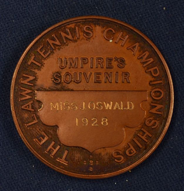 1928 Wimbledon Lawn Tennis Championship Umpire’s Souvenir bronze medal – awarded to Miss J Oswald – c/w engraved details on the reverse and dated 1928 (Miss Helen Mills) in the original Fattorini & Sons makers case
