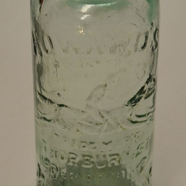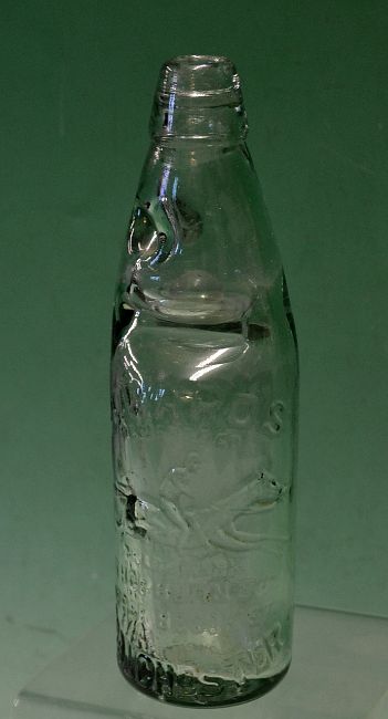 Horseracing – a Vic glass codd bottle c/w marble stopper retailed by Howards Manchester with embossed horse & jockey c/w the original marble stopper overall 9.25”