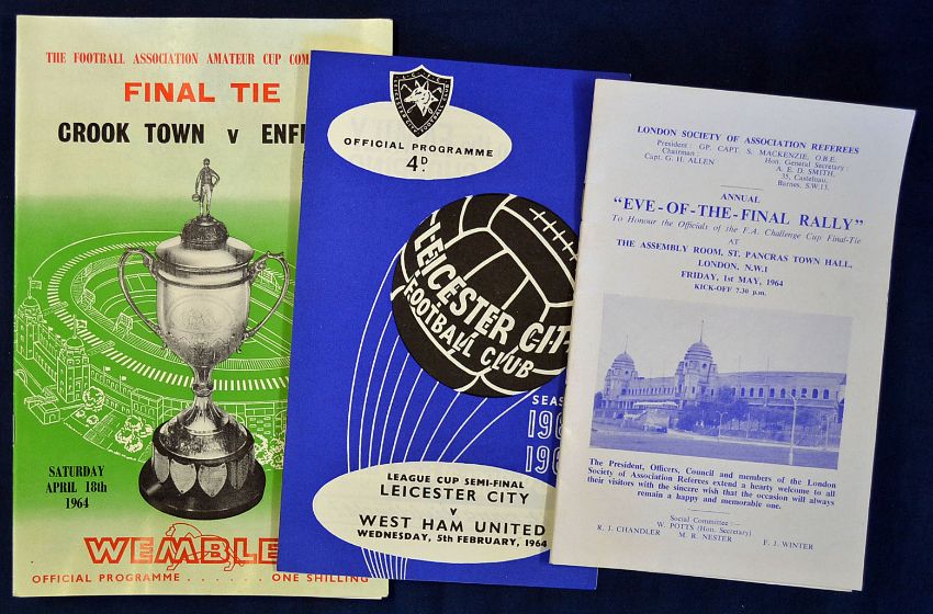 1964 FA Cup Final Eve of the Final Rally football programme, 1963/64 Leicester City v West Ham Utd F.L. Cup semi-final, Wednesday 5 February 1964, 1964 FA Amateur Cup Final Crook Town v Enfield VG (3)