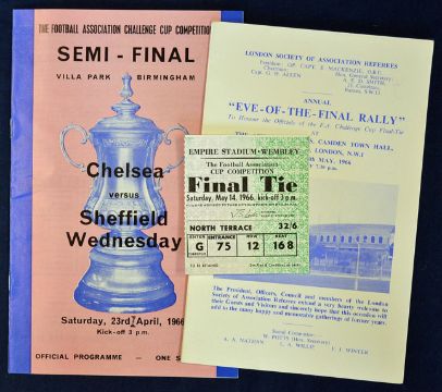 1966 FA Cup Final match ticket plus Eve of the Final Rally programme (signed by Jack Taylor), plus semi-final match programme Chelsea v Sheffield Wednesday G (3)