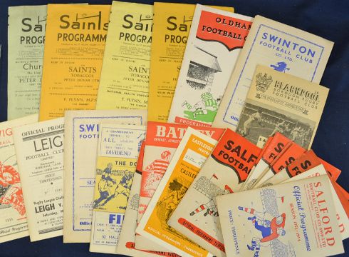 Salford Rugby League home and away programmes from 1950s onwards, mainly 1960s, generally in good condition (87) + 1960s Rugby League Magazine (11) Total (98)