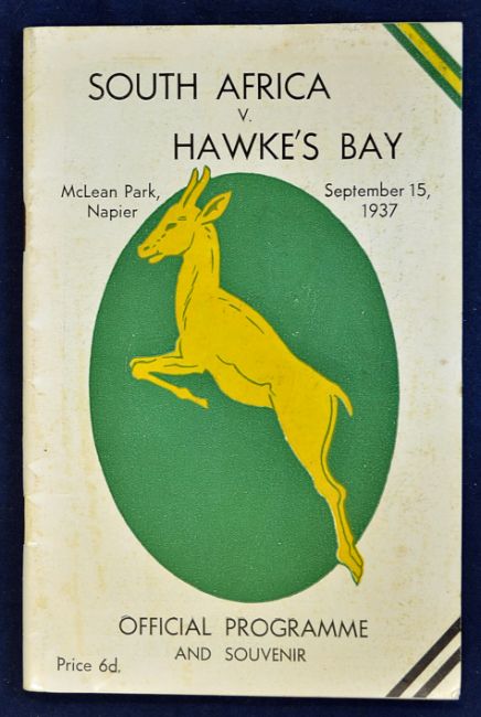 1937 South Africa versus Hawkes Bay rugby programme - played at McLean Park Napier on September 15 with South Africa winning 21-12 - some slight staple rust otherwise overall (G) together with the original Stuart Geer Motors internal flyer (2)