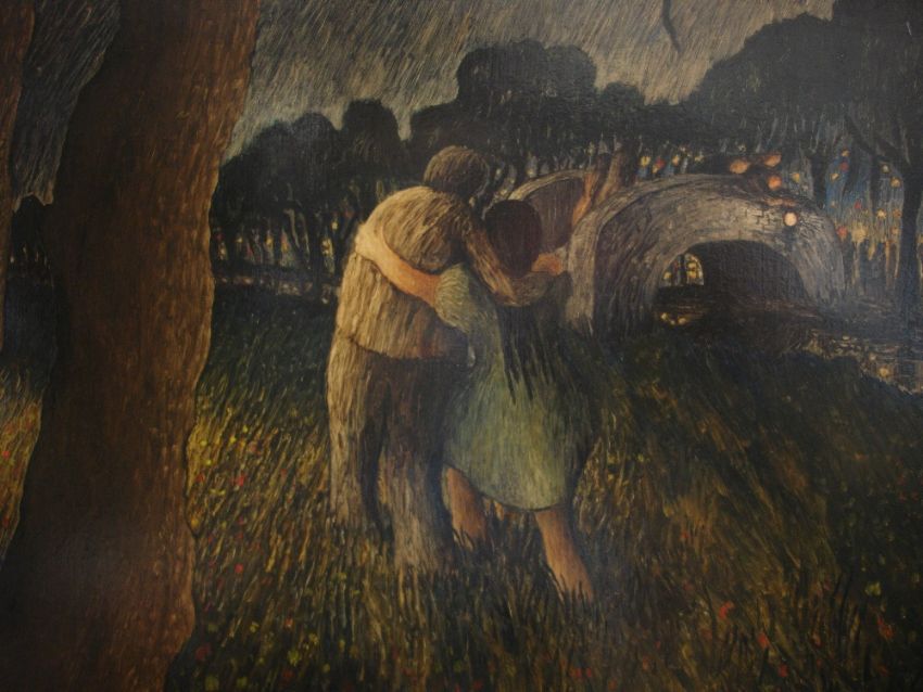 Rodney McGough. American. York, Going to the Fair. Signed, dated 1966 and inscribed verso. Oil on panel 24 ½"x 24"