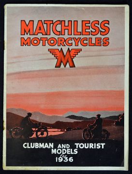 Matchless Motor Cycles 1936 Sale Catalogue 44-45 Plumstead Road, Woolwich, London SE 18. CLUBMAN AND TOURIST MODELS FOR 1936, an impressive 12 page sales catalogue illustrating and detailing with prices 9 different models of their machines. Ranging from £39.10s. for 250cc to £69.10s for their 990 Twin Engined Tourist Model, in good clean condition