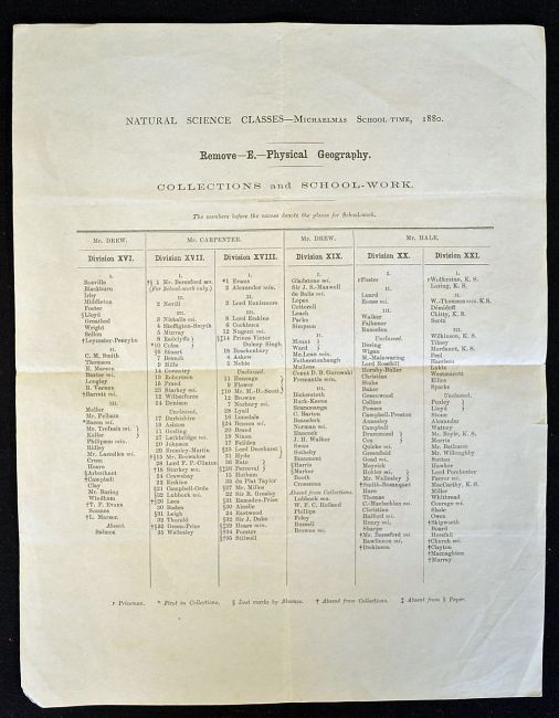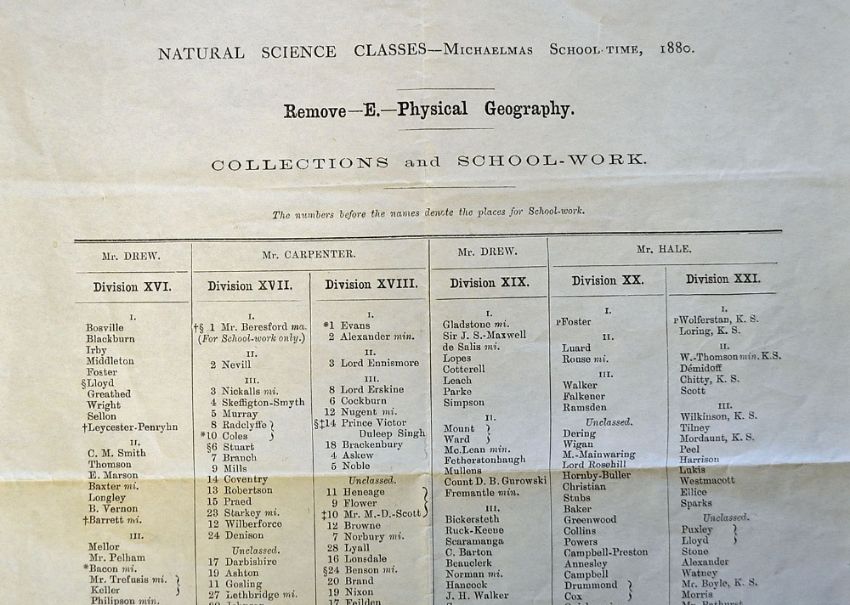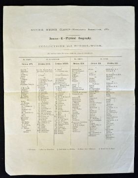 India Prince Victor Duleep Singh~s Eaton School report of Collections and School-work dated 1880 Natural Science Classes^ single sheet^ with centre fold and measuring 23.5 x 30cm
