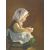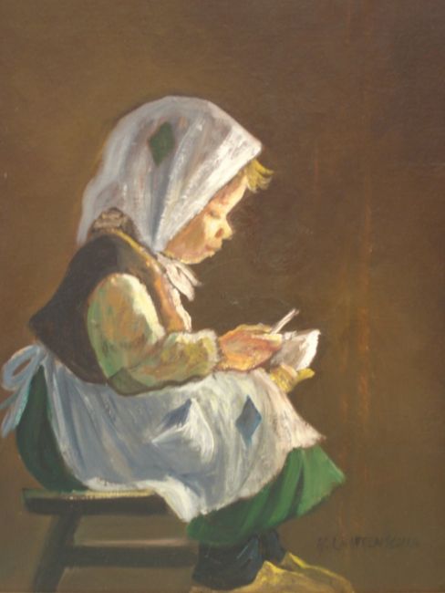 Robert Lautenschlager, 20th C. American. Boy and girl seated on stools and eating from bowls. A pair. Signed. Oil on board 20"x 16"
