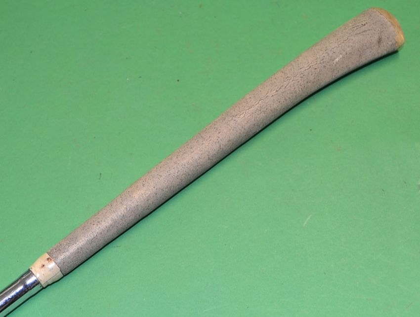 Rare and early Ping Redwood City Mod. 1A pat pending centre shaft rectangular shaped brass putter-front and rear soles are stamped "Ping by Karsten" to the one and "Redwood City Calif-Pat Pend" to the other and the full raised centre chamfered sole plate stamped to the heel "Mod 1A" and the number "9" to the toe - fitted with the original shaft and Golf Pride white rubberised pistol grip
