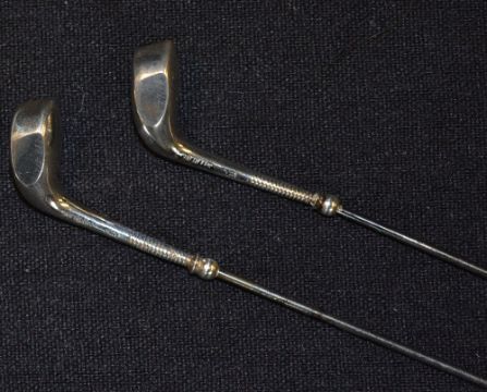 2x Charles Horner sterling silver Vic golf club hat pins - both in very good condition
