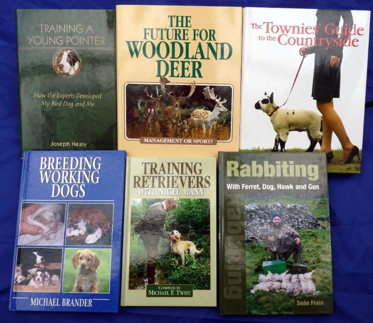 McKinley, R - "The Future For Woodland Deer" 1st ed 1999, Mason, J - "The Townies Guide To The Countryside" 1st ed 2003, Frain, S - "Rabbiting With Ferret, Dog, Hawk & Gun" 1st ed 2005,, Healy, J - "Training A Young Pointer" 1st ed 2005, Brander, M - "Training Working Dogs" 1st ed 2008 and Twist, MF - "Training Retrievers With Nigel Mann" 1st ed 2001. (6)