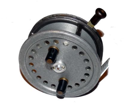 REEL: Hardy Silex Superba 4" alloy drum casting reel, twin black handles, 2 screw latch, casting trigger with black handle knob, ivorine scale and nickel check adjuster, spins well, light paint wear to backplate, good.