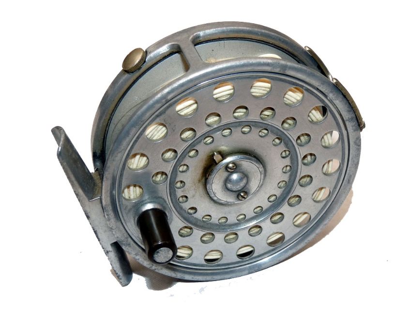 REEL: Hardy LRH Lightweight alloy fly reel, 3 pillars, U shaped line guide, rim tension regulator, 2 screw drum latch, polished finish, working well.