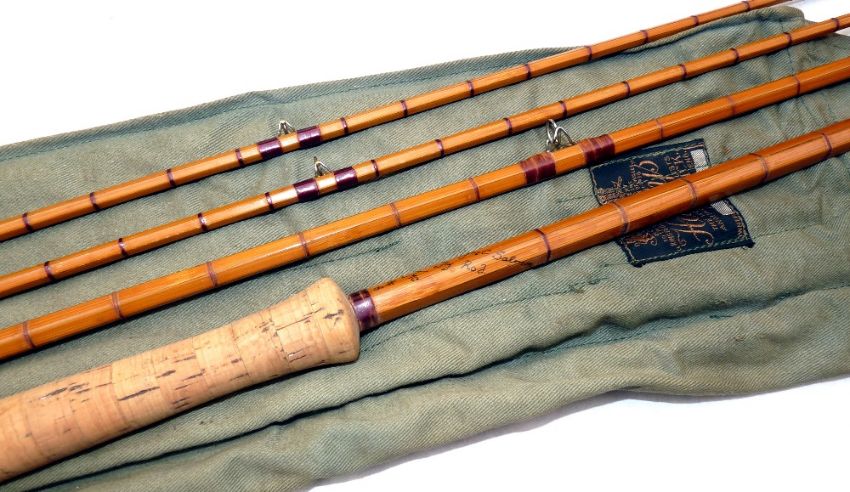 ROD: Hardy The JMC Salmon fly rod, 12' 3 piece with spare tip (4" short) Palakona, post numbered, lined butt/tip rings, burgundy close whipped intermediates, bronze ferrules, alloy stoppers, line rate 8, 16" cork handle with alloy fittings, special order from Hardy?, in MOB.