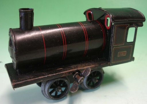 Gebruder Bing A tinplate 0 gauge clockwork train set comprising tank engine 2663, tender, coach and four section circular track. Condition report: Good, minor age related scratches, no box