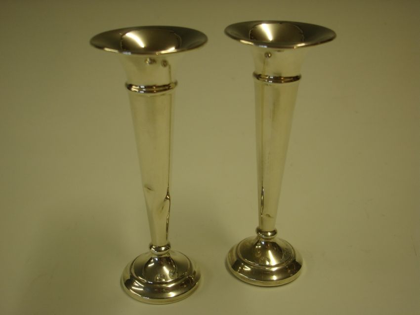 A Pair of Silver Bud Vases Of trumpet form. 4" high. Birmingham 1971. Condition report: One vase has two dents, the other one small dent