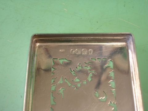 An Early Victorian Glass Trinket box. The silver cover engine turned and finely pierced with scrolling foliage around a vacant cartouche, the base star cut. Maker: Frances Douglas. 3 ¼" wide. London 1847. Condition report: Tiny scratch to one side otherwise in fine condition, no chips or damage