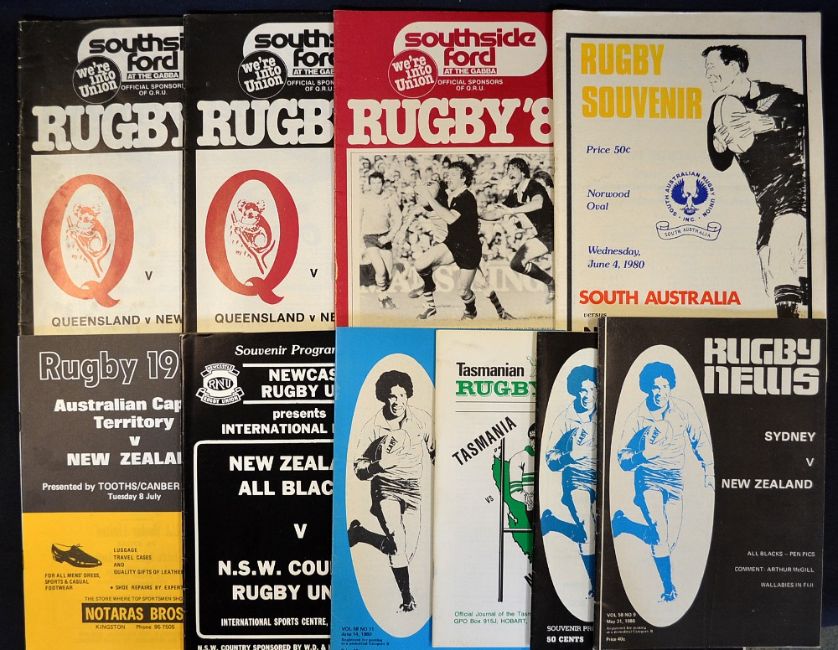 Collection of 1980 New Zealand rugby tour to Australia programmes - to incl vs Sydney, vs South Australia, vs Victoria, vs Tasmania, vs New South Wales, vs New South Wales country, vs Australia Universities, vs Queensland (2) vs Australian Capital Territory - overall (G) (10)