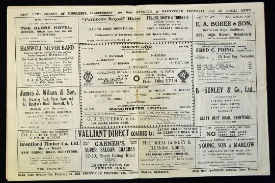 1934/1935 Brentford v Manchester Utd football programme Division 2 match at Griffin Park. The Bees won 3-1 and finished Champions at the end of the season. F/G
