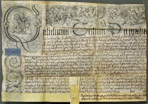 Worcestershire William III Exemplification of Recovery 1690s an Exemplification of a Recovery for lands in Worcestershire featuring affine printed and large calligraphic introduction in Latin with Royal Coat of Arms contained within an elaborated engraved initial letter "G" (for Gugliemus). This was probably issued shortly after the death of Mary II in 1694 and usual double portrait of the joint monarch has been replaced by this Royal Coat of Arms, it is probable that the original portrait was no longer valid but it was too early for a sole portrait of William III to have been engraved, size approx. 55 x 76cm