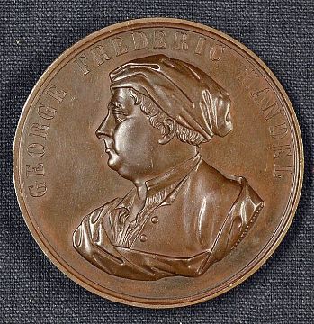 Entertainment George Frederick Handel Commemorative Bronze Medallion 1859 The Great Centenary Concerts at the Crystal Palace Obverse; Portrait Bust of Handel. Reverse; Laurel Wreath with legend "Centenary Commemoration Crystal Palace MDCCCLIX" (1859). Size 50mm, in good condition. Note: These were made for the Musicians involved, thus with the name of one of the musicians stamped on the edge. That year there was a series of concerts of Handel's music with large orchestras, the huge choirs sometimes numbered over 4,000. In as new condition