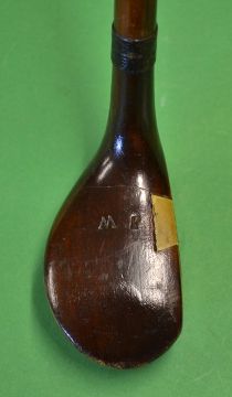Fine Sunday golf walking stick fitted with socket wood head handle - stamped J W to the head and fitted with ivorine face insert retained by 4 wooden dowels, whipped hosel joint fitted with hickory shaft (minus tip), overall length 32.5"