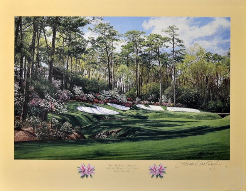Hartough, Linda Set of 4x National Augusta Golf Club "MASTERS COLLECTION" signed prints to incl "The 12th Hole "GOLDEN BELL", "The 13th Hole AZALEA", "The 16th Hole "REDBUD" and "The 18th Hole "HOLLY" - all in matching frames overall 16"x 20.25" (G)