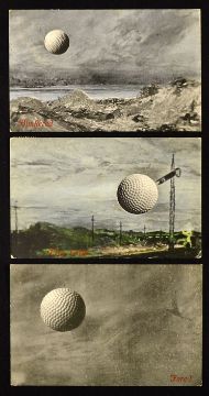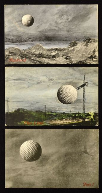 3x rare bramble golf ball postcards - issued by D&F Livingstone, Tayport, Fife and titled "Fore!", "The Line", and "Bunkered" - all used and dated circa 1904, some slight bruising to the corners otherwise overall (F/G)