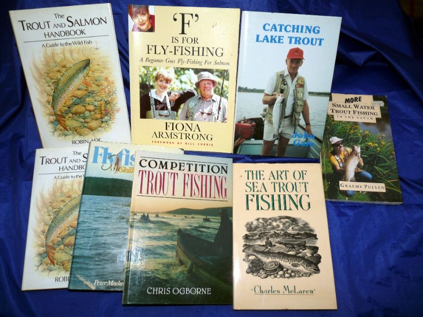Ade, T - 2 x The Trout And Salmon Handbook by 1st ed H/b, D/j, Armstrong, F - "F Is For Fly Fishing" 1st ed, 1993 S/b, MacKenzie-Philps, P - "Fly Fishing Skill On Still Waters" 1st ed 1986, H/b, D/j, and 4 others by Ogborne, Pullen, Gale and McLaren. (8)