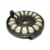 REEL: USA built birdcage pattern white metal reel with linear foot, Billinghurst style, 3.75" diameter, single pear shaped handle, central screw, curved foot blade with integral line guide, fine working order with fly line.